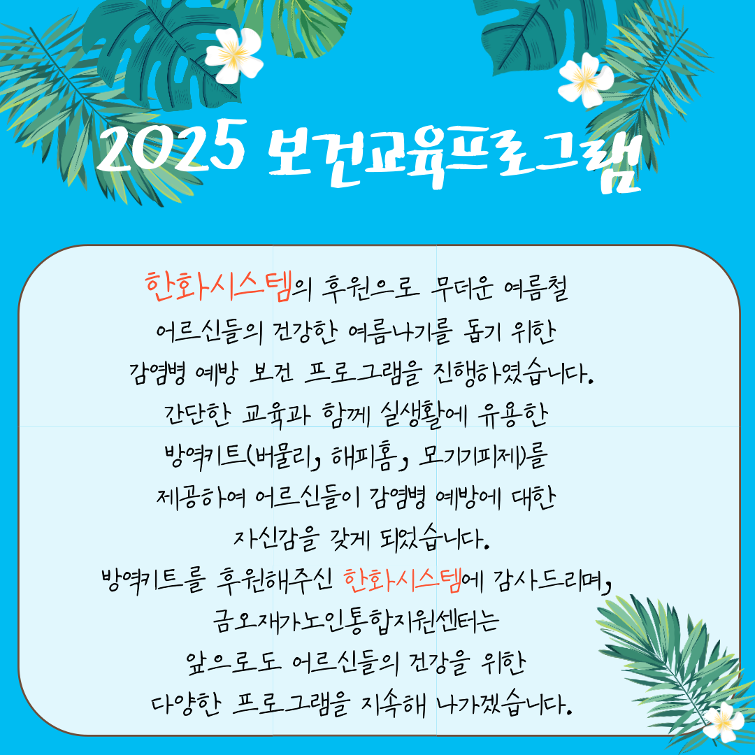 노인맞춤돌봄 2025년 보건교육프로그램 페이지 정보 작성자 관리자 댓글 0건 조회 309회 작성일 25-08-07 17:25 목록 본문 이전글2025년 희망잇는 나눔 의류지원 사업[독고노인종합지원센터·굿네이버스] 25.08.08 다음글#8월 #LG전자노동조합 구미지부 '여름철건강간식' 나눔 25.08.07 댓글 0 댓글목록 등록된 댓글이 없습니다.